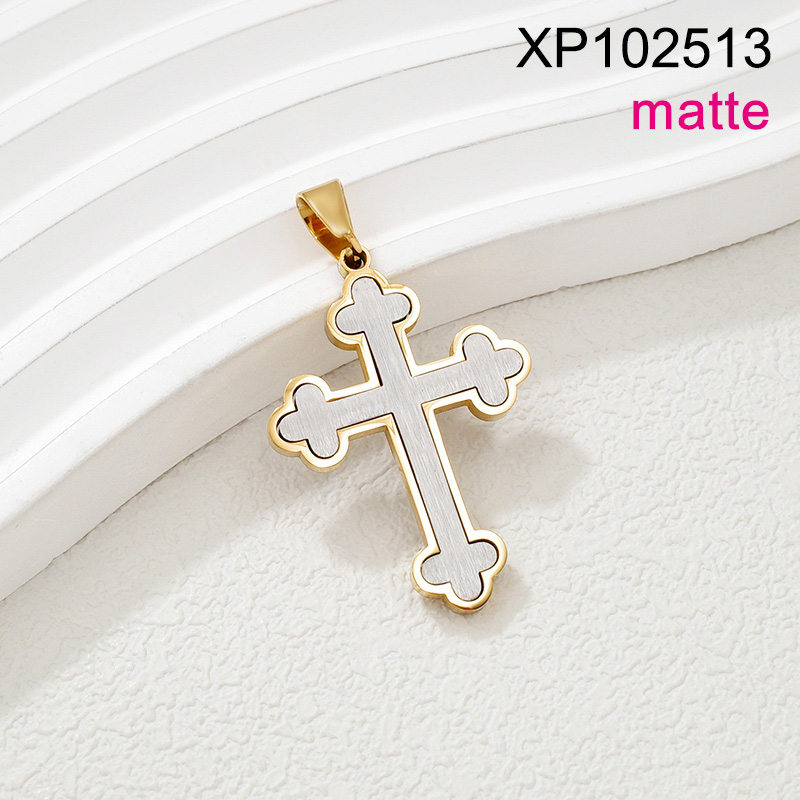 Level B Stainless Steel New Trendy Man Jewelry Cross Two Tone Matte Pendant