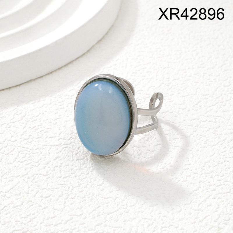 Home > Level B Stainless Steel New Trendy Women Jewelry Oval Natural Stone Steel color Open Rings;Ring size can be adjusted freely