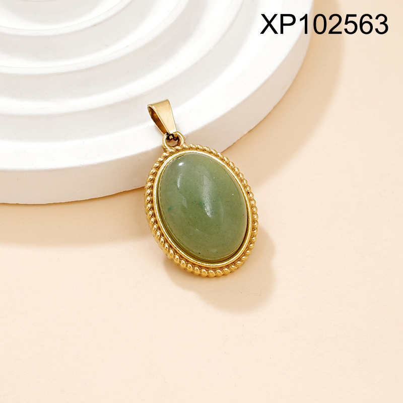 Level B Stainless Steel New Trendy Women Jewelry Oval Natural Stone Golden Pendant