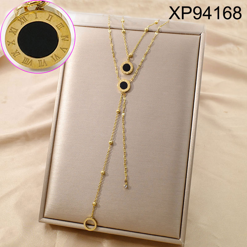Level B Stainless Steel Jewelry New Trendy Two Layers Chain Roman Numeral Golden Pendant