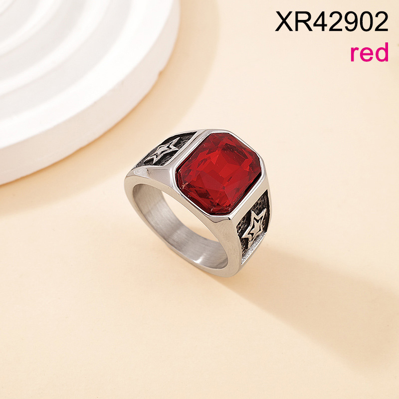 Level B Stainless Steel New Trendy Man Jewelry Punk Rock Vintage Geometry Red Stone Steel color Rings
