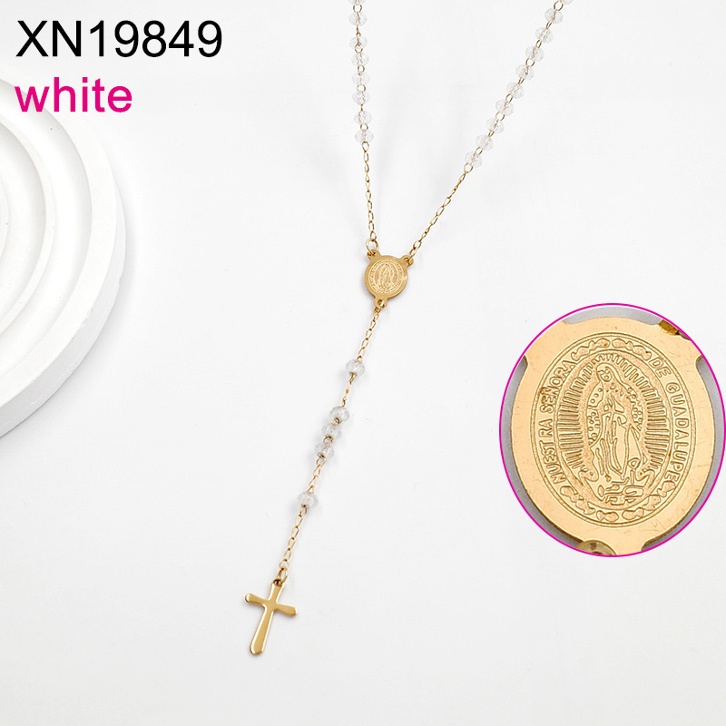 Level B Stainless Steel New Trendy Women Jewelry White Bead Chain Religion Cross Golden Necklace
