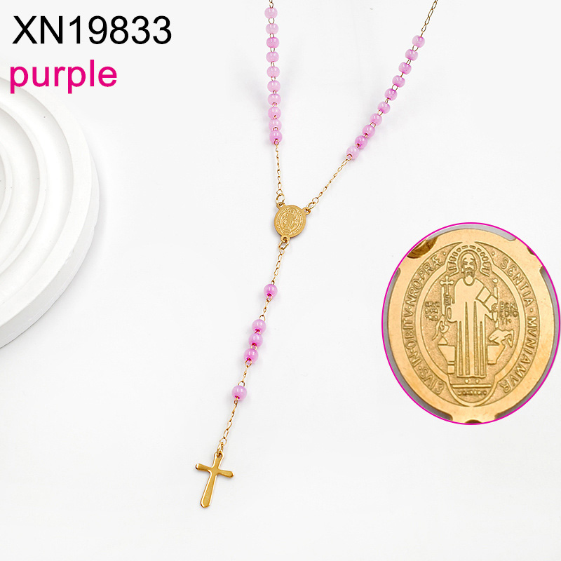 Level B Stainless Steel New Trendy Women Jewelry Bead Chain Religion Cross Golden Necklace