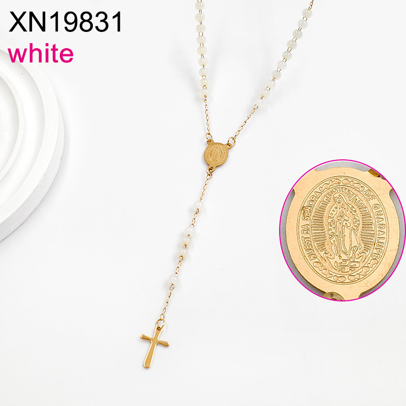 Level B Stainless Steel New Trendy Women Jewelry Bead Chain Religion Cross Golden Necklace