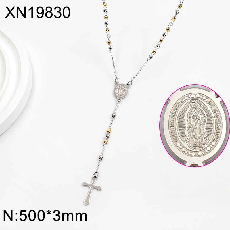 Level B Stainless Steel New Trendy Women Jewelry Bead Chain Religion Cross Two Tone Necklace