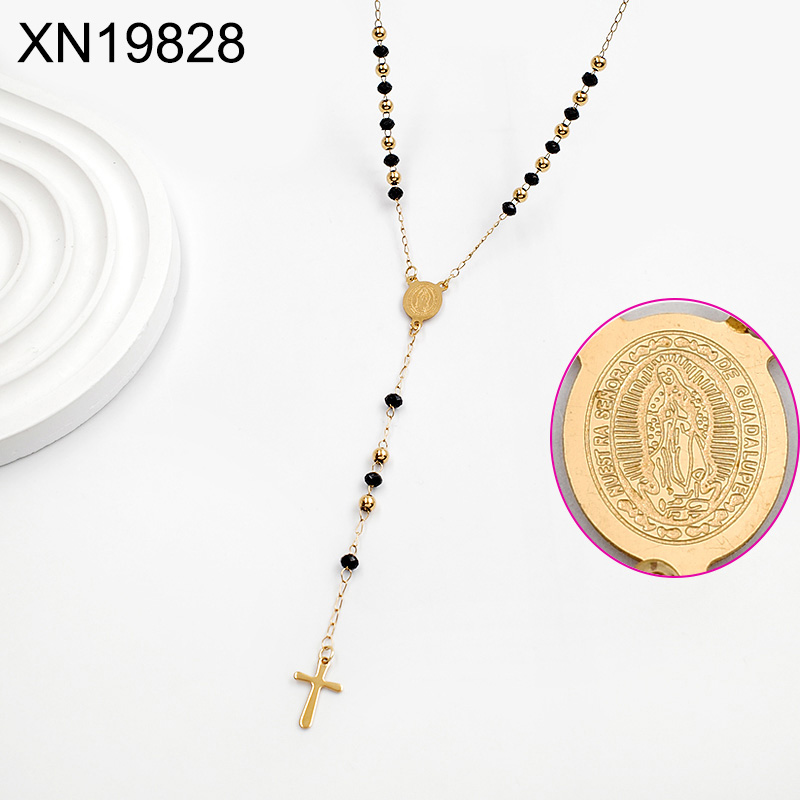 Level B Stainless Steel New Trendy Women Jewelry Bead Chain Religion Cross Golden Necklace