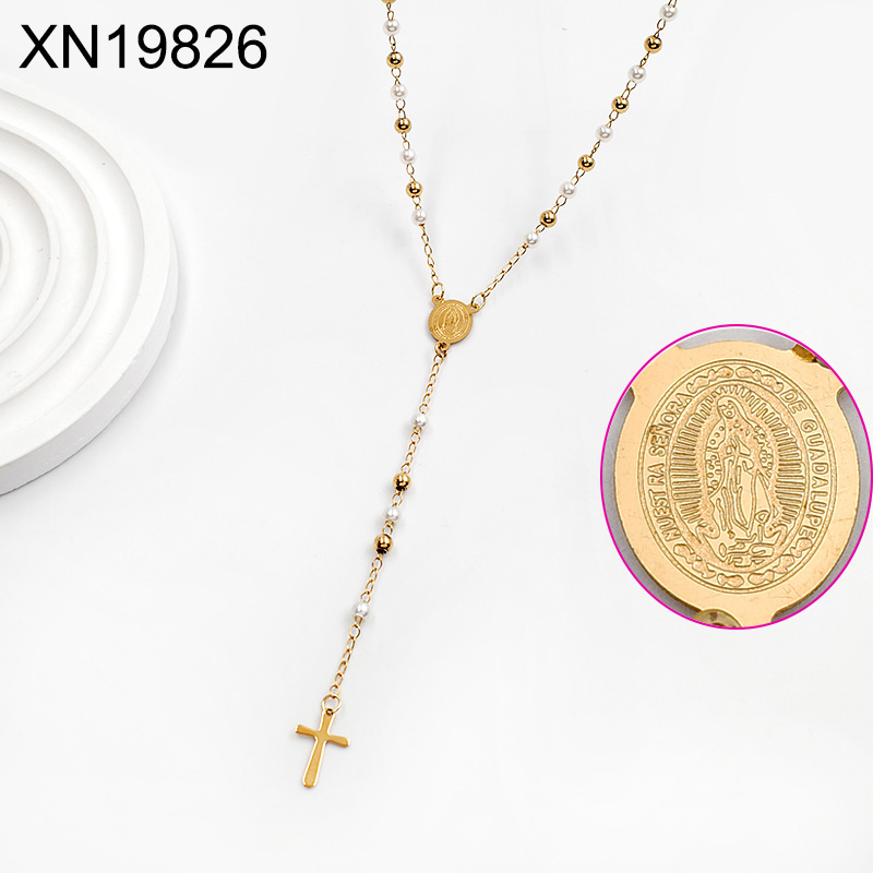 Level B Stainless Steel New Trendy Women Jewelry Pearl Style/Plastic Beads Bead Chain Religion Cross Golden Necklace