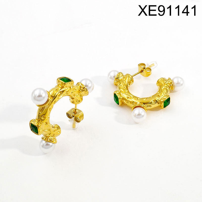 Home > Level B Stainless Steel Jewelry New Trendy Pearl Style/Plastic Beads Golden C-Shape Style Earring