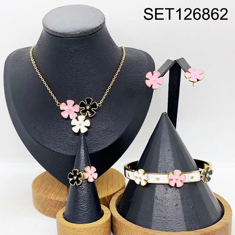 Level B Stainless Steel New Trendy Women Jewelry Drip Oil/Enamel Flower Golden 4pcs SET
