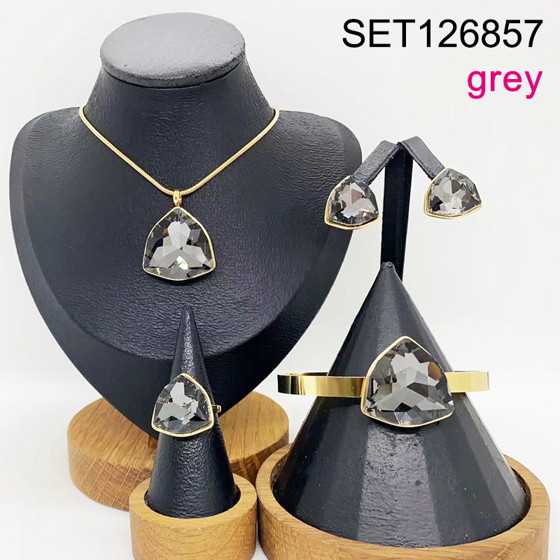 Level B Stainless Steel New Trendy Women Jewelry Triangle Golden 4pcs SET