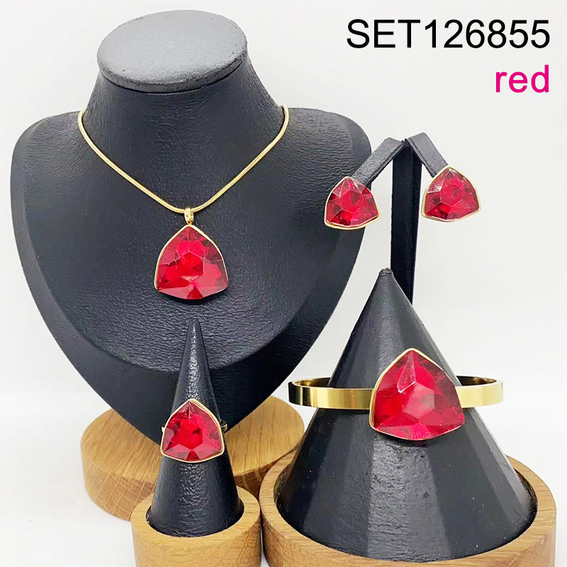 Level B Stainless Steel New Trendy Women Jewelry Triangle Golden 4pcs SET