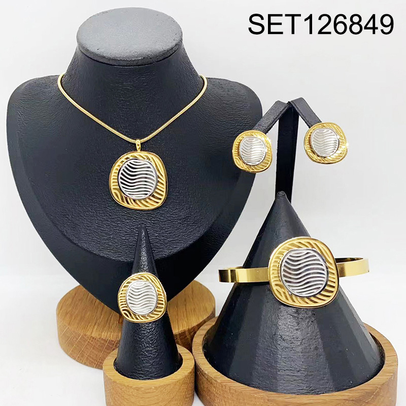 Level B Stainless Steel New Trendy Women Jewelry Geometry Two Tone 4pcs SET