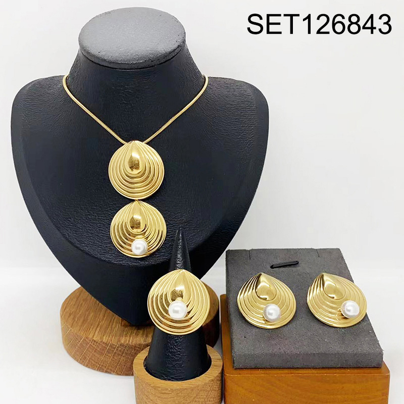 Level B Stainless Steel New Trendy Women Jewelry Round Water Drip Golden 3pcs SET