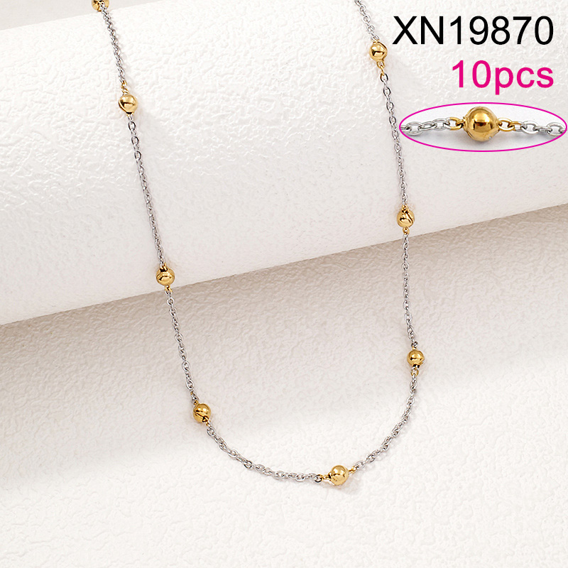 Level B Stainless Steel New Trendy Women Jewelry Two Tone Round Beads Necklace