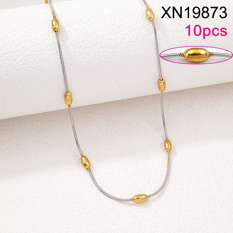 Level B Stainless Steel New Trendy Women Jewelry Two Tone Round Beads Necklace