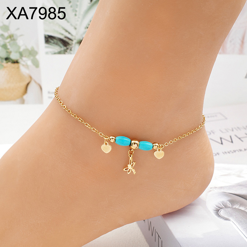 Level B Stainless Steel New Trendy Women Jewelry Animal Dragonfly Heart Golden Anklet
