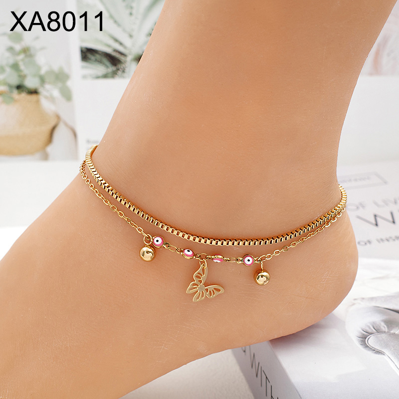 Home > Level B Stainless Steel New Trendy Women Jewelry Two Layers Chain Animal Butterfly Golden Anklet