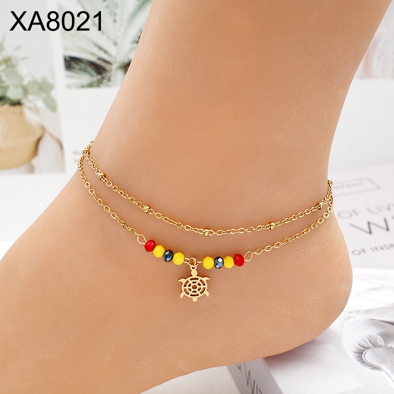 Level B Stainless Steel New Trendy Women Jewelry Two Layers Chain Summer beach Animal Turtle Golden Anklet