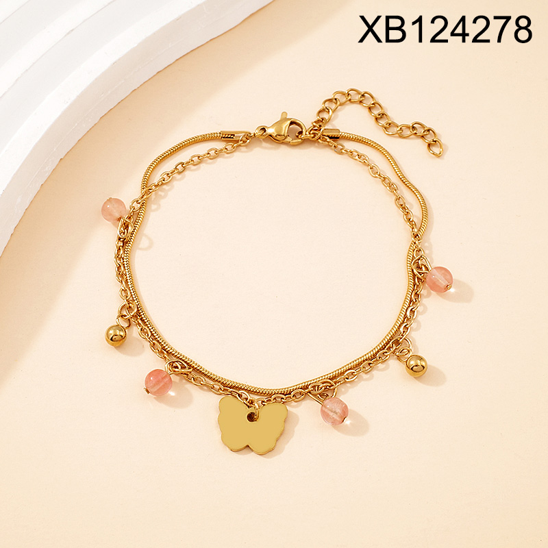 Level B Stainless Steel New Trendy Women Jewelry Two Layers Chain Animal Butterfly Golden Bracelet