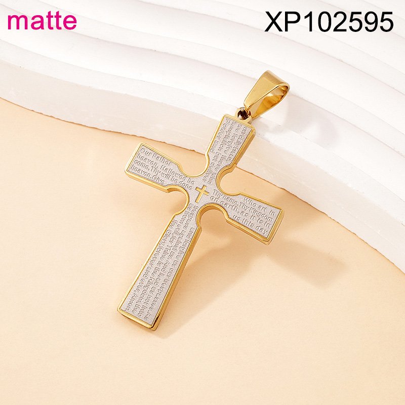 Level B Stainless Steel New Trendy Man Jewelry Cross Two Tone Matte Pendant
