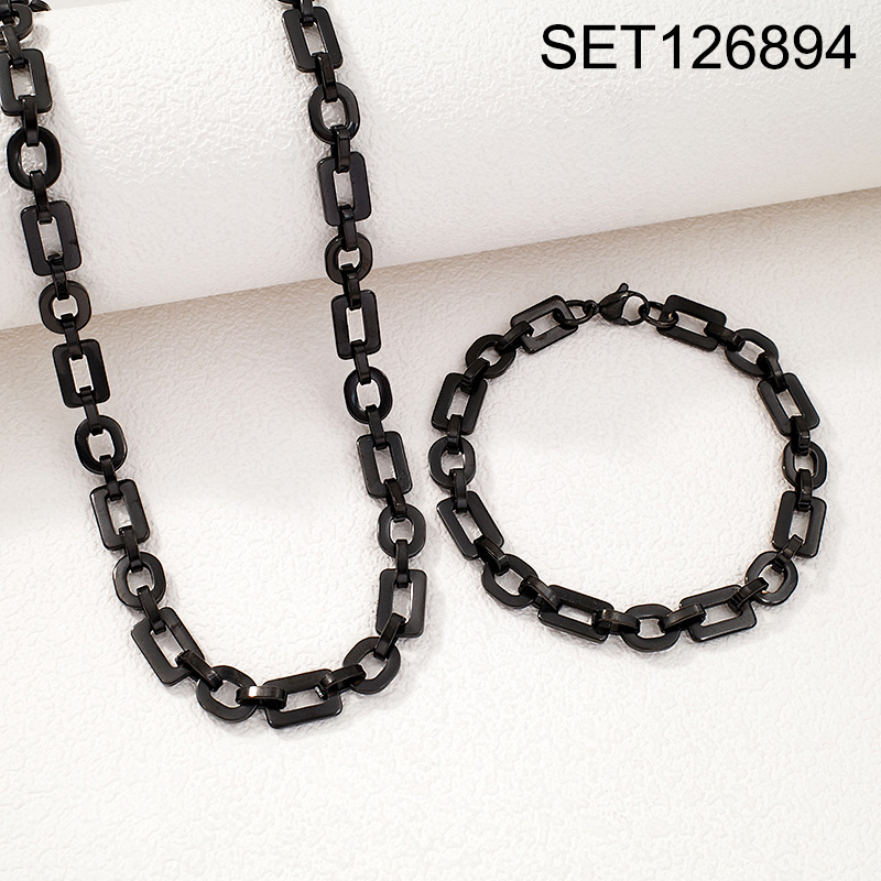 Level B Stainless Steel New Trendy Man Jewelry Plating Black Chain SET