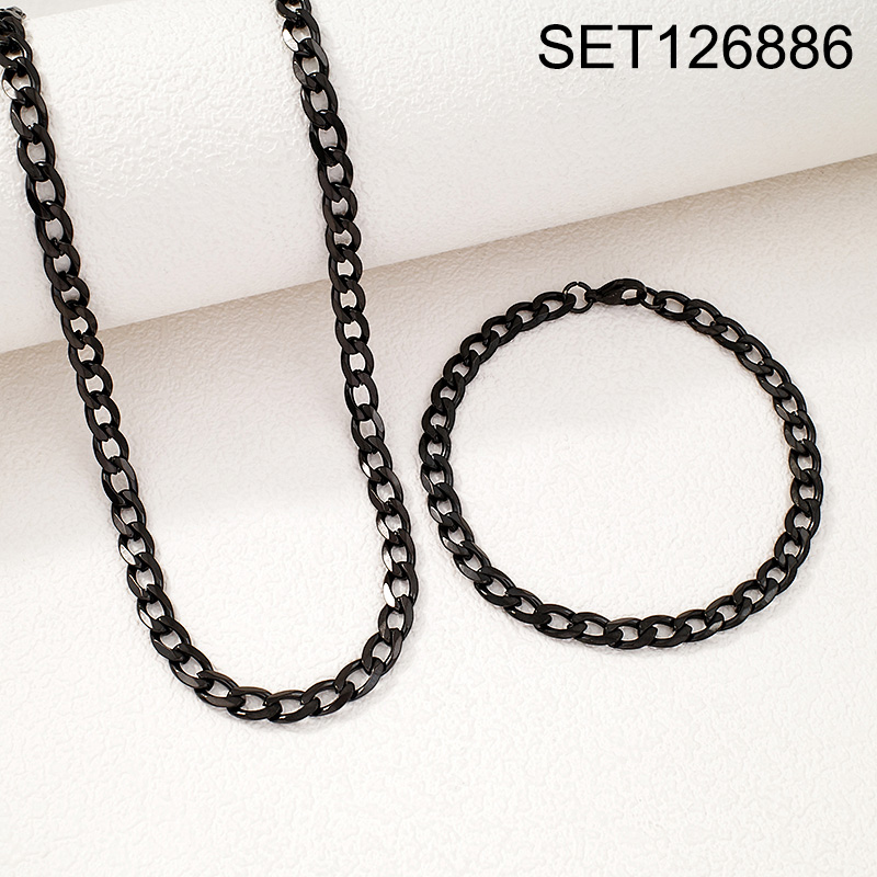 Level B Stainless Steel New Trendy Man Jewelry Plating Black Chain SET