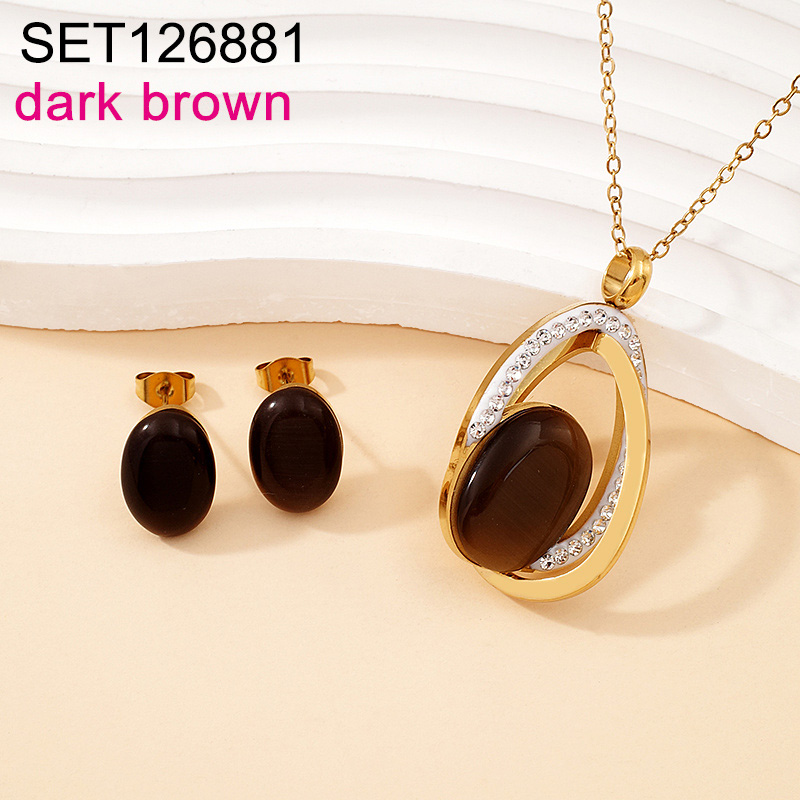 Level B Stainless Steel New Trendy Women Jewelry Oval Opal Golden SET