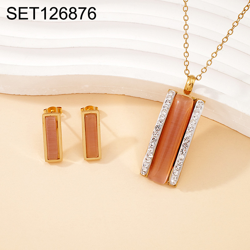 Level B Stainless Steel New Trendy Women Jewelry Rectangle Opal Golden SET