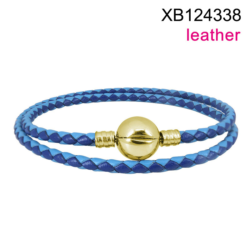 Level B Stainless Steel New Trendy Women Jewelry Two Layers Chain Golden Leather Bracelet