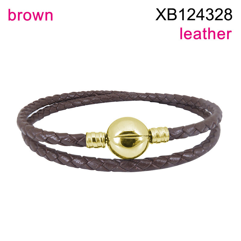 Level B Stainless Steel New Trendy Women Jewelry Two Layers Chain Golden Leather Bracelet
