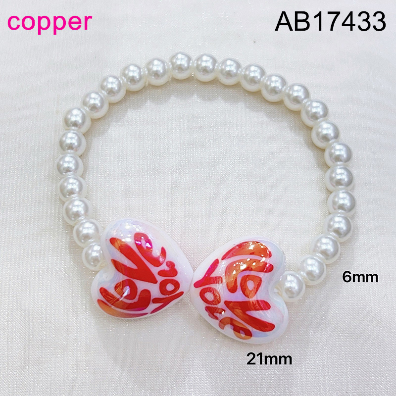 Level B Fashion Jewelry New Trendy Women Jewelry Pearl Style/Plastic Beads Heart Golden Valentine's Day Elastic Bracelet;Material:copper (cobre)