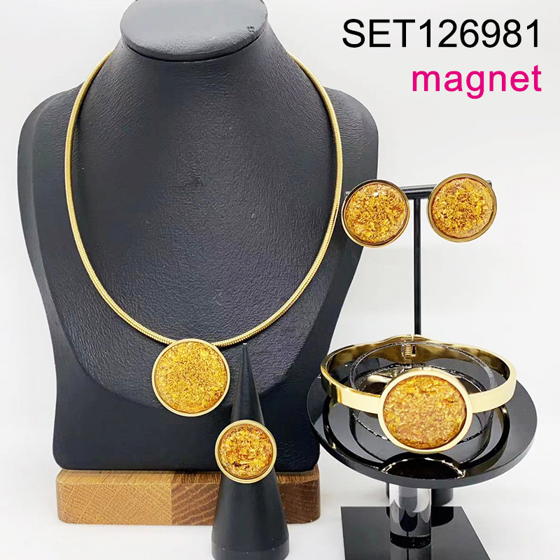 Level B Stainless Steel New Trendy Women Jewelry Round Golden Magnet buckle 4pcs SET