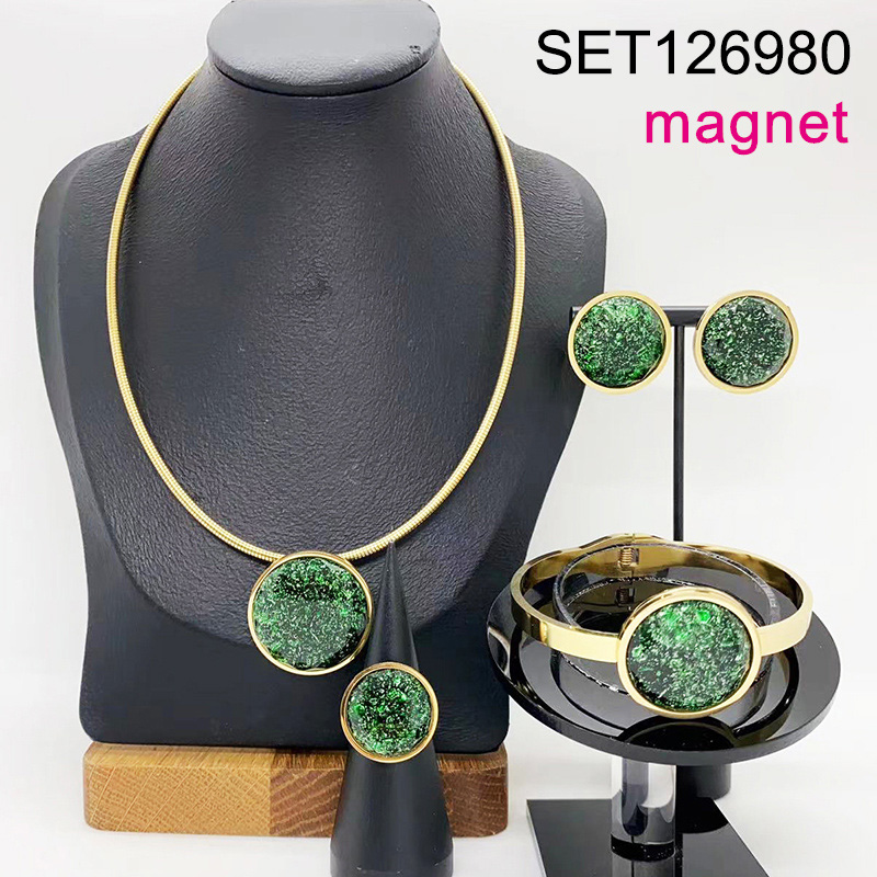 Level B Stainless Steel New Trendy Women Jewelry Round Golden Magnet buckle 4pcs SET