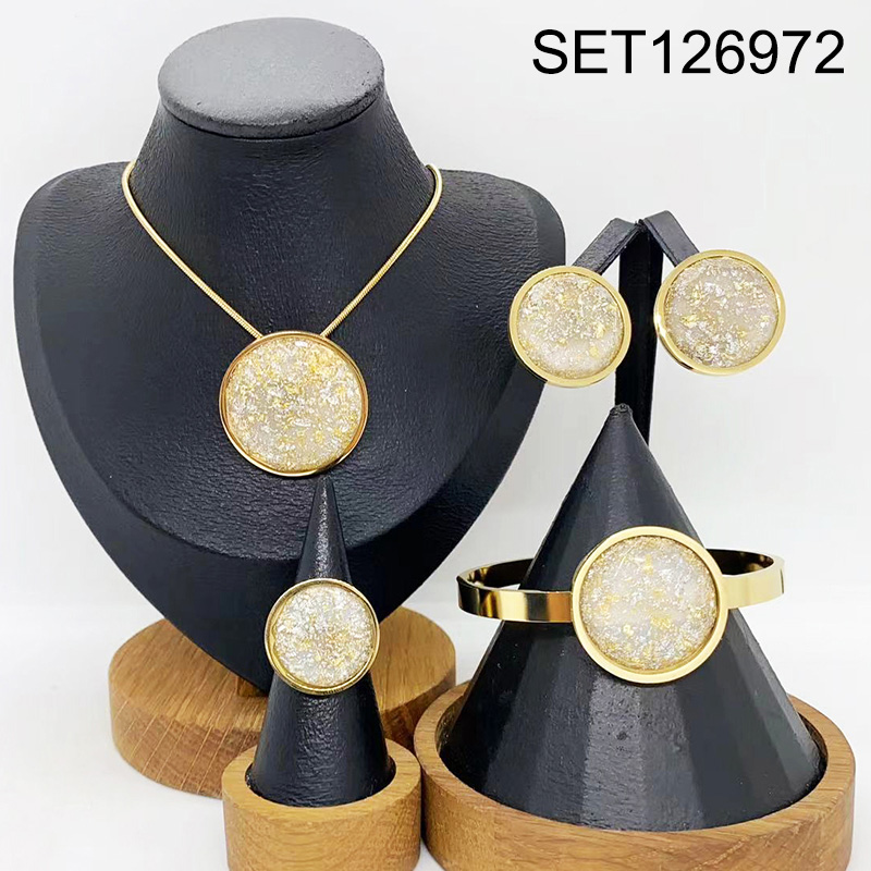 Level B Stainless Steel New Trendy Women Jewelry Round Golden 4pcs SET