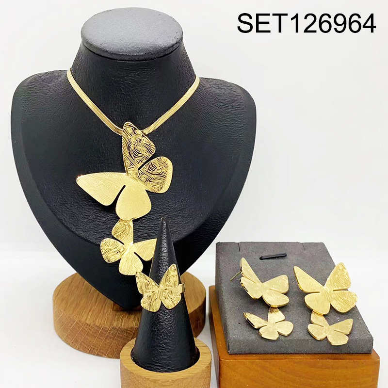 Level B Stainless Steel New Trendy Women Jewelry Animal Butterfly Golden 3pcs SET