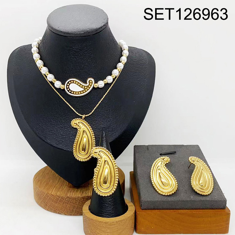 Home > Level B Stainless Steel New Trendy Women Jewelry Two Layers Chain Pearl Style/Plastic Beads Water Drip Golden 3pcs SET