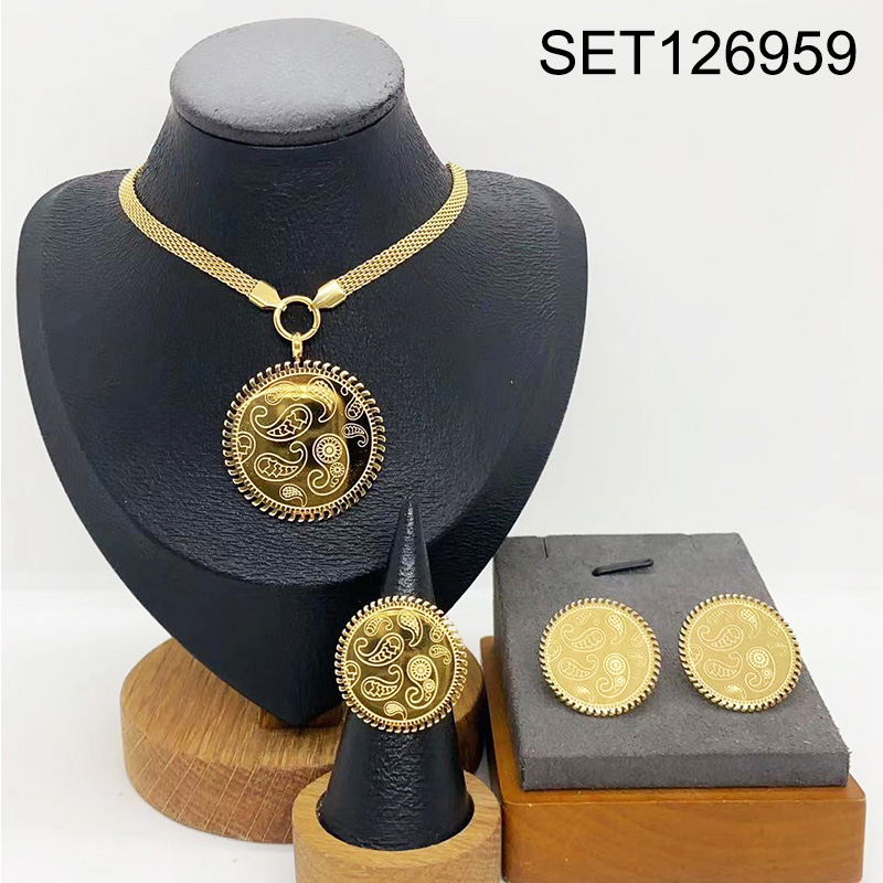 Level B Stainless Steel New Trendy Women Jewelry Round Water Drip Golden 3pcs SET