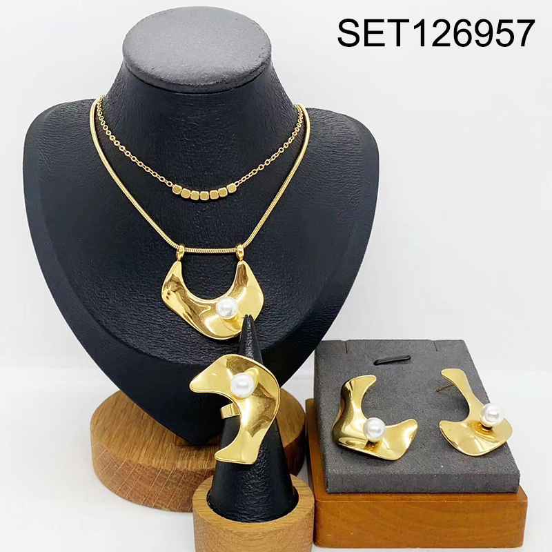 Level B Stainless Steel New Trendy Women Jewelry Two Layers Chain Golden 3pcs SET