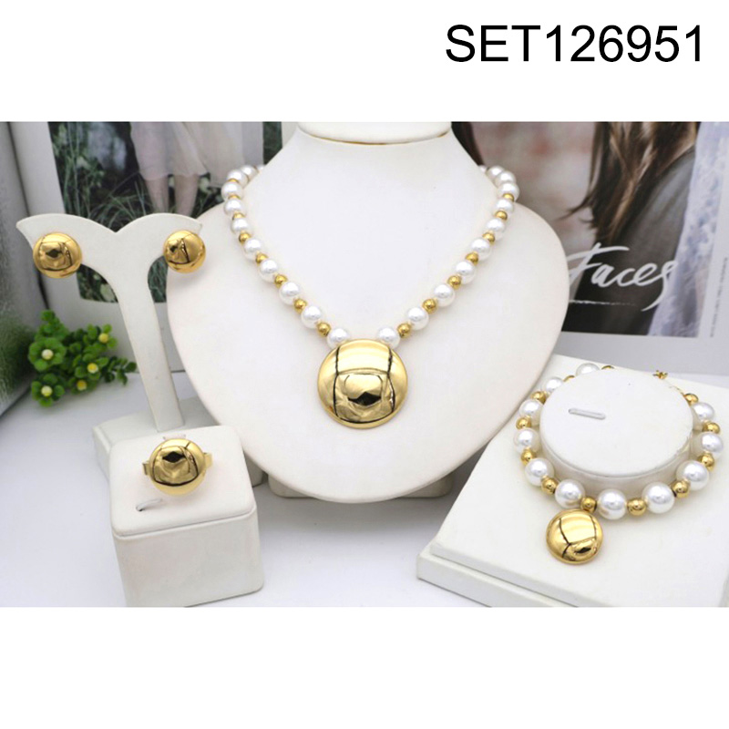 Level B Stainless Steel New Trendy Women Jewelry Pearl Style/Plastic Beads Round Golden 4pcs SET