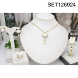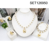 Level B Stainless Steel New Trendy Women Jewelry Pearl Style/Plastic Beads Flower Golden 4pcs SET