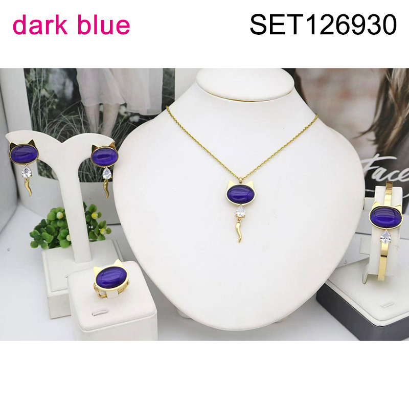Home > Level B Stainless Steel New Trendy Women Jewelry Oval Dark blue Opal Golden 4pcs SET