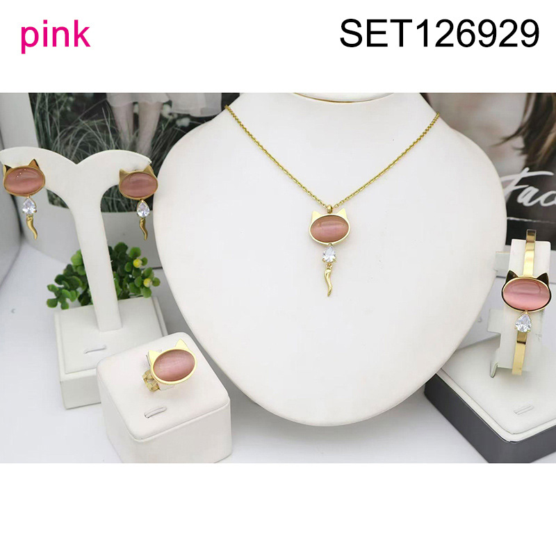 Home > Level B Stainless Steel New Trendy Women Jewelry Oval Pink Opal Golden 4pcs SET