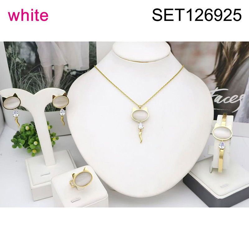 Level B Stainless Steel New Trendy Women Jewelry Oval White Opal Golden 4pcs SET