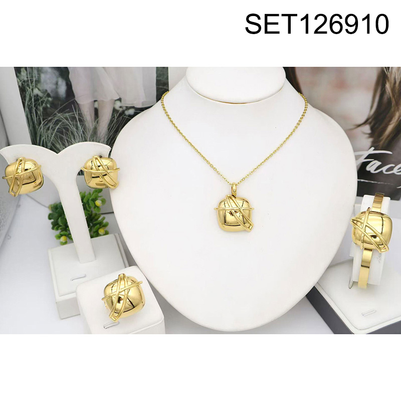Level B Stainless Steel New Trendy Women Jewelry Square Golden 4pcs SET