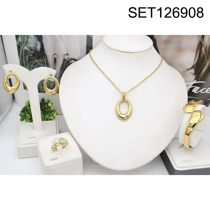 Level B Stainless Steel New Trendy Women Jewelry Oval Golden 4pcs SET