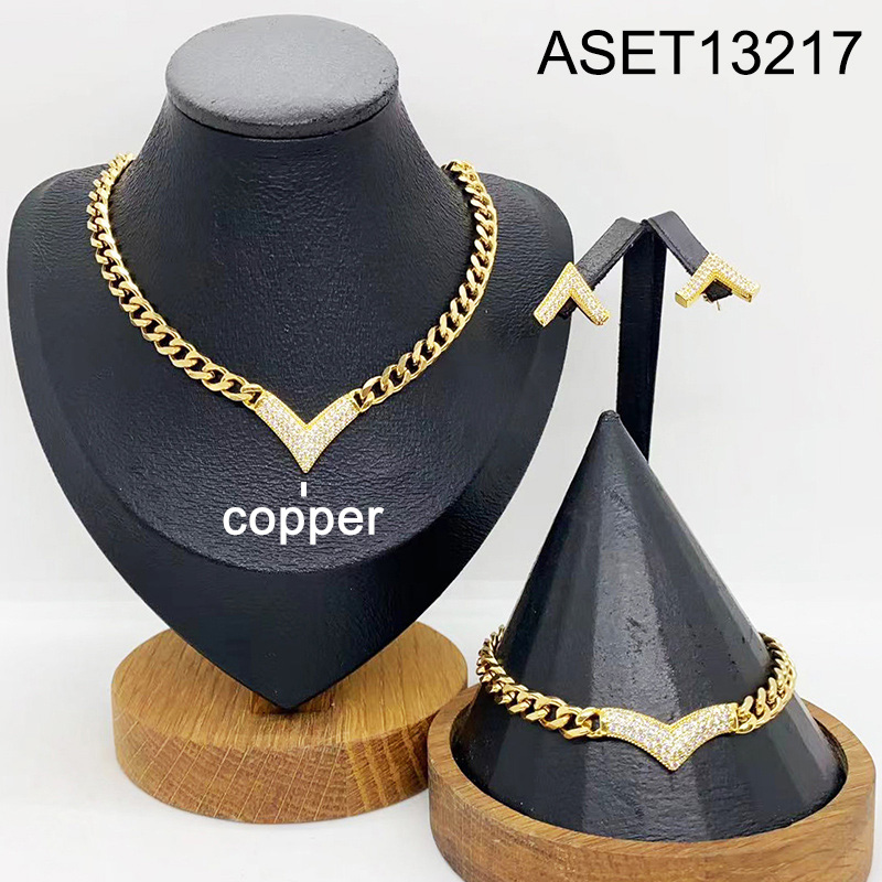 Level B Fashion Jewelry New Trendy Women Jewelry Letter V Golden 3pcs SET;Material:copper (cobre)