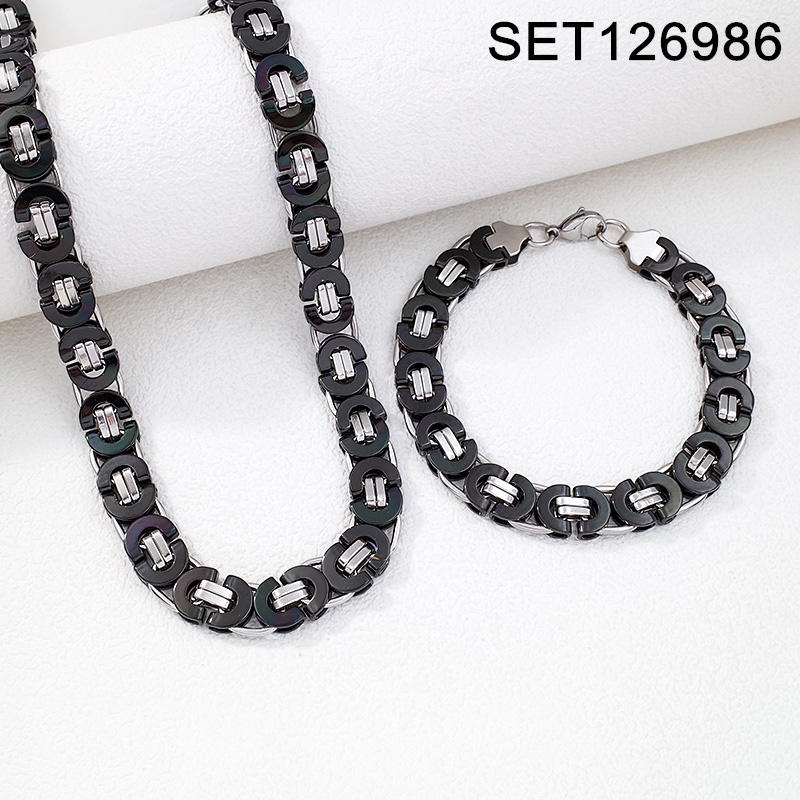 Level B Stainless Steel New Trendy Man Jewelry Thick Chain Two Tone SET
