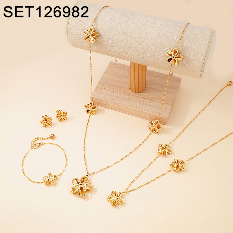 Home > Level A Stainless Steel New Trendy Women Jewelry Flower Golden 4pcs SET