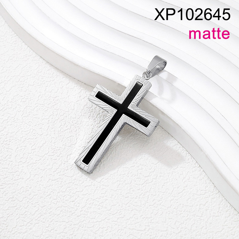 Level B Stainless Steel New Trendy Man Jewelry Cross Two Tone Matte Pendant