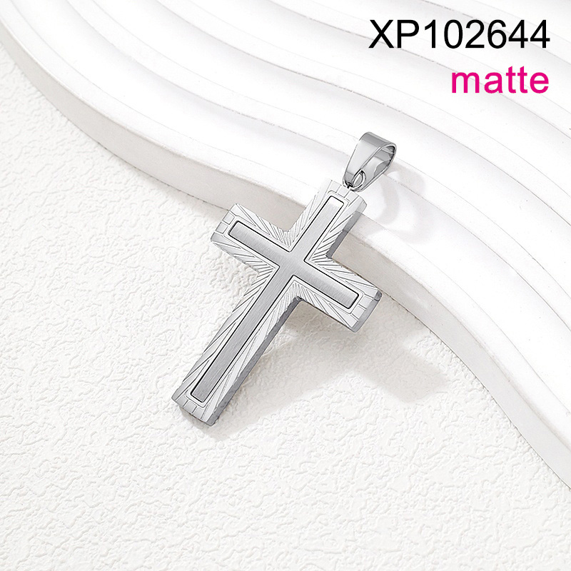 Level B Stainless Steel New Trendy Man Jewelry Cross Steel color Matte Pendant